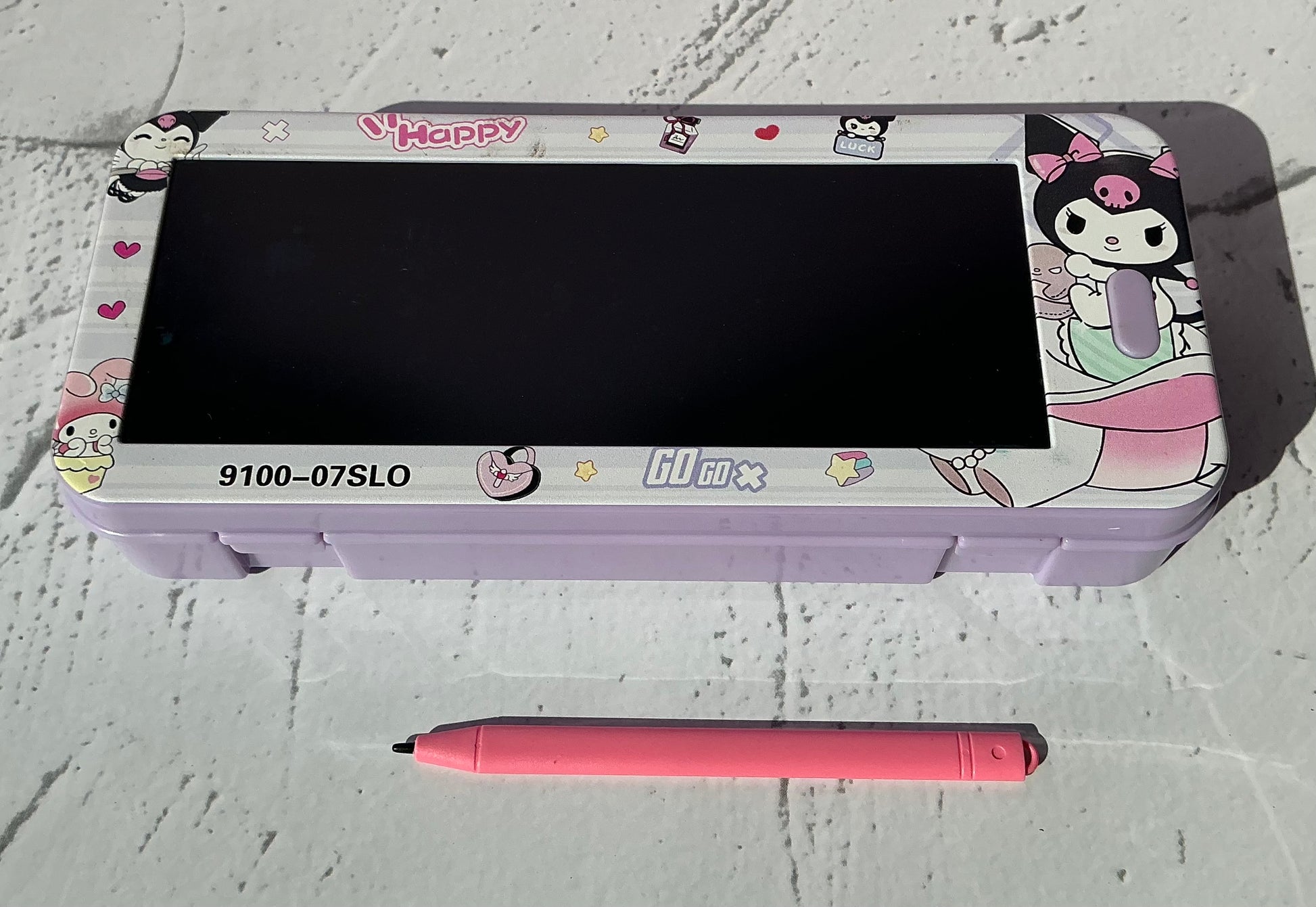TheLCD pencil box is a modern storage solution with a built in LCD screen for writing, drawing and notetaking. It features compartment for pen, pencils, and other stationery. Compact and portable. It combines organisation with fun, creativity, making it perfect for students and professionals alike. These come in three themes such as Kuromi, Spiderman, dinosaur, Captain America and Princess.