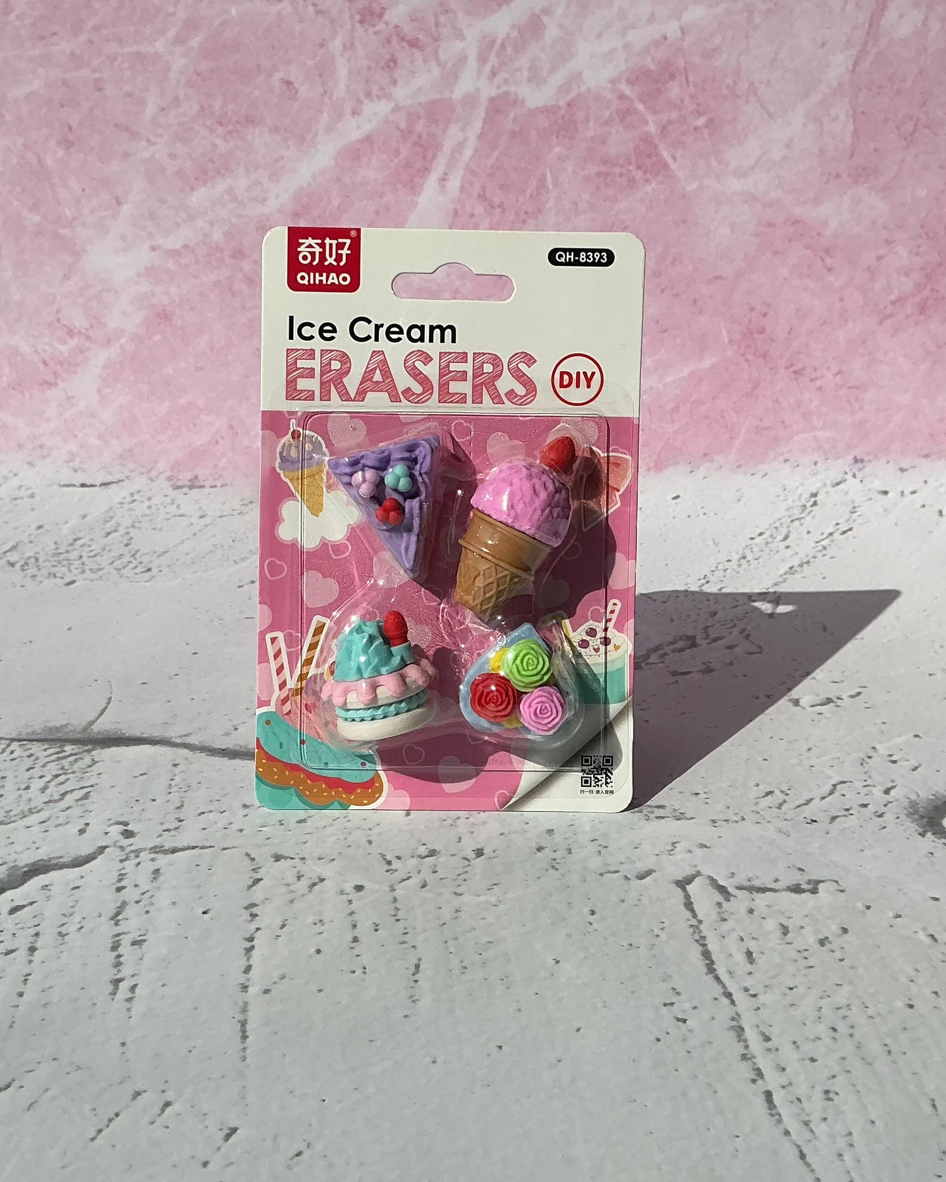 Add some sweet fun to your desk with these ice cream theme, erasers. Shaped like colourful ice cream cone. These erasers are perfect for school or home use. Available in a variety of vibrant designs, they make correcting mistakes. A treat while adding a playful touch to any workspace.